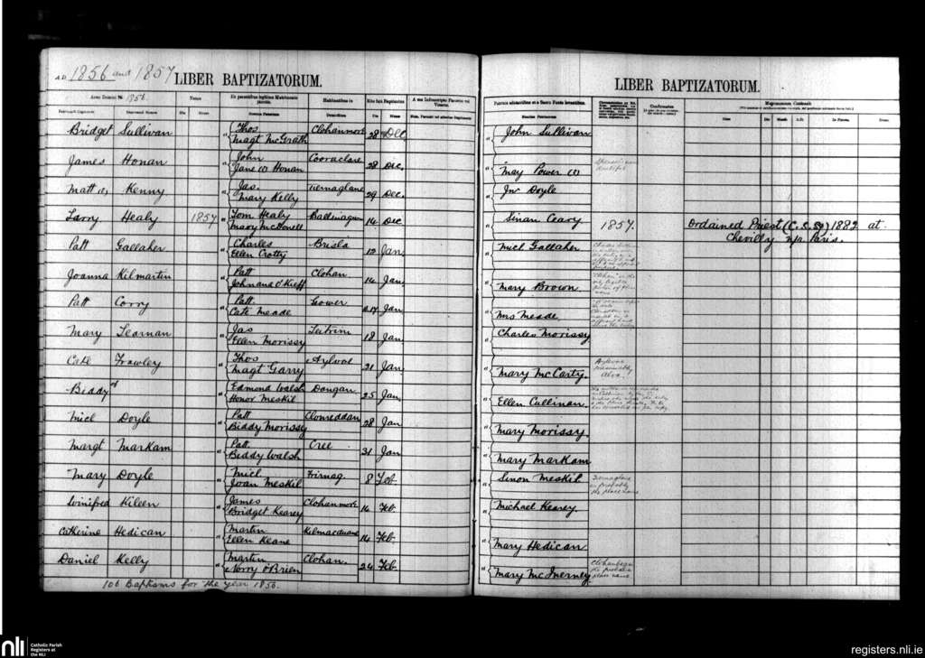 Kilmacduane; County of Clare; Diocese of Killaloe. Baptisms, Dec. 1856 to Feb. 1857