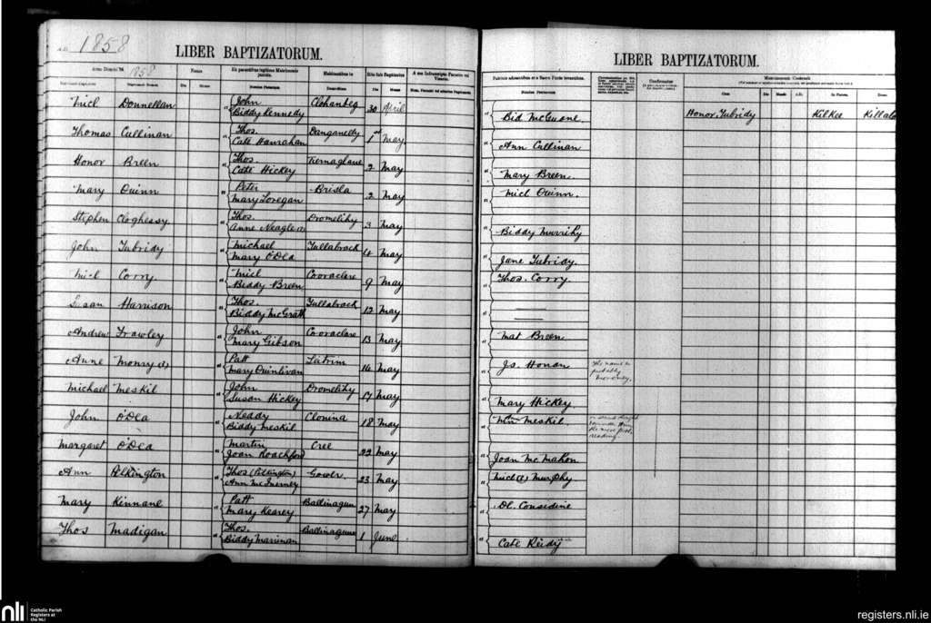 Kilmacduane; County of Clare; Diocese of Killaloe. Baptisms, Apr. 1858 to June 1858