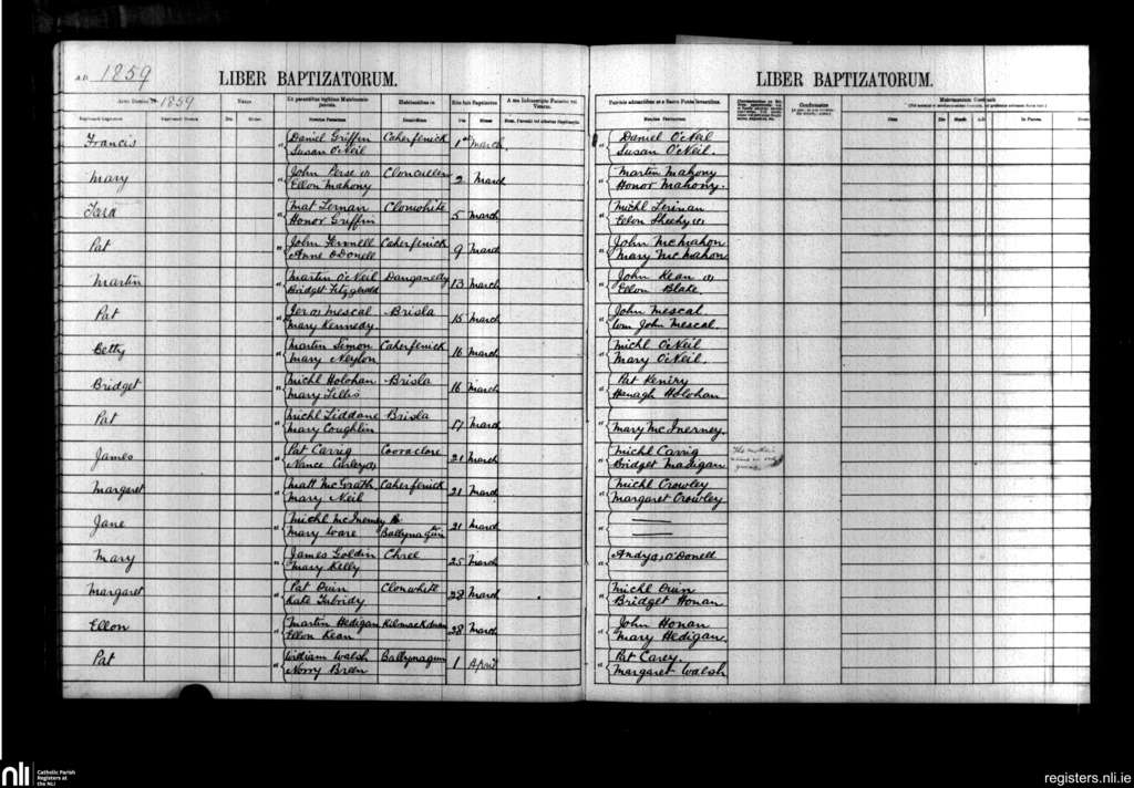 Kilmacduane; County of Clare; Diocese of Killaloe. Baptisms, Mar. 1859 to Apr. 1859