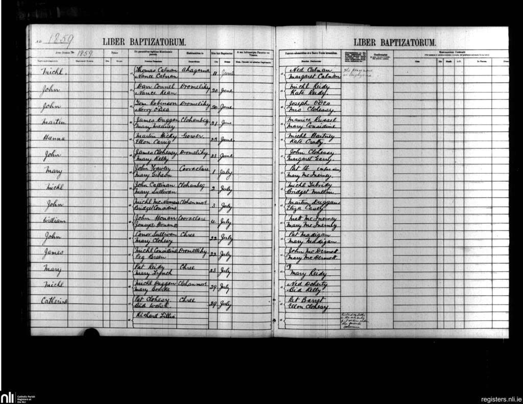 Kilmacduane; County of Clare; Diocese of Killaloe. Baptisms, June 1859 to July 1859