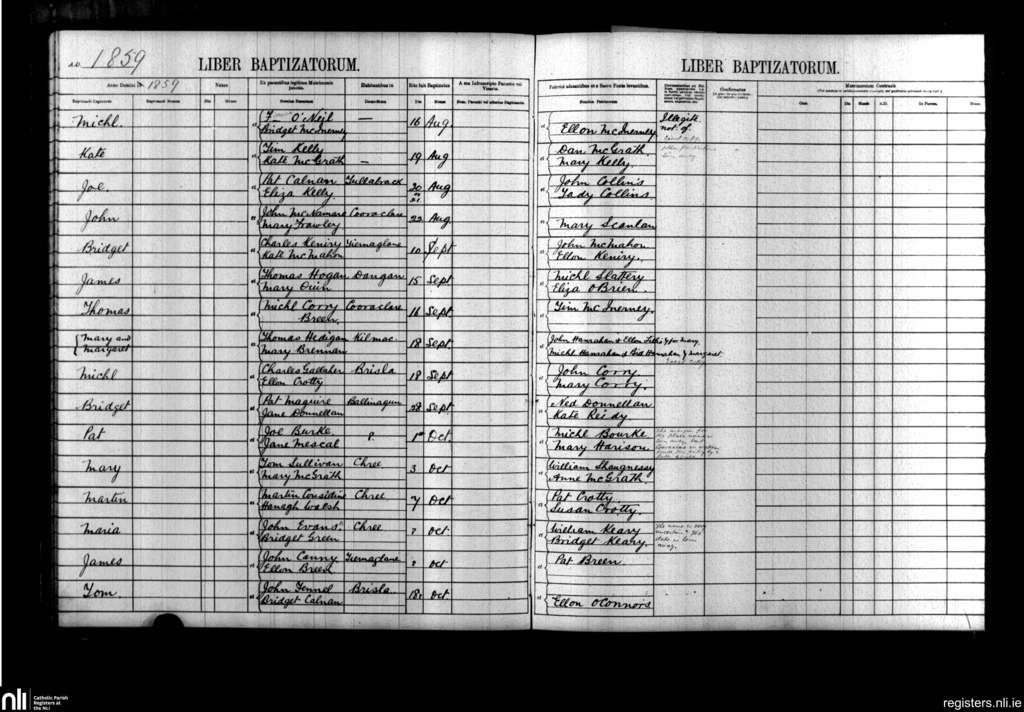 Kilmacduane; County of Clare; Diocese of Killaloe. Baptisms, Aug. 1859 to Oct. 1859
