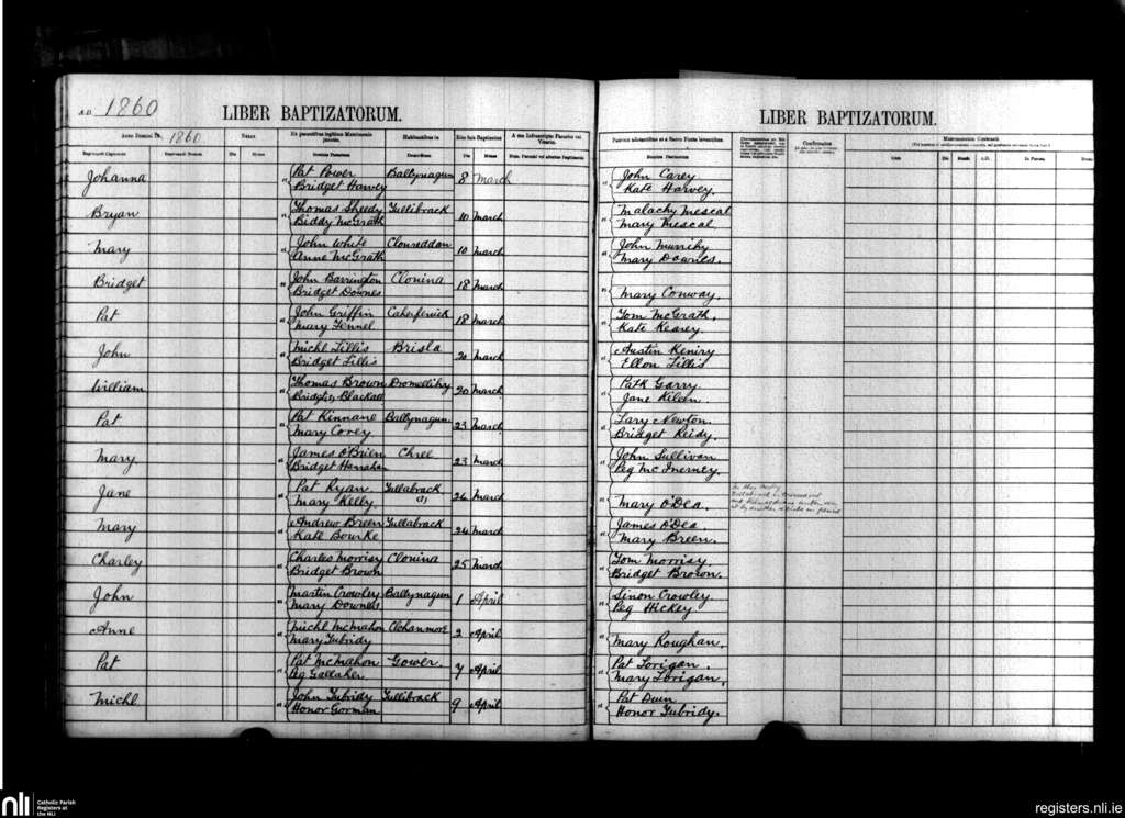 Kilmacduane; County of Clare; Diocese of Killaloe. Baptisms, Mar. 1860 to Apr. 1860