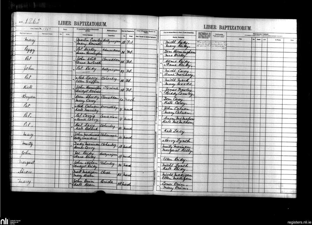 Kilmacduane; County of Clare; Diocese of Killaloe. Baptisms, Feb. 1862 to Mar. 1862