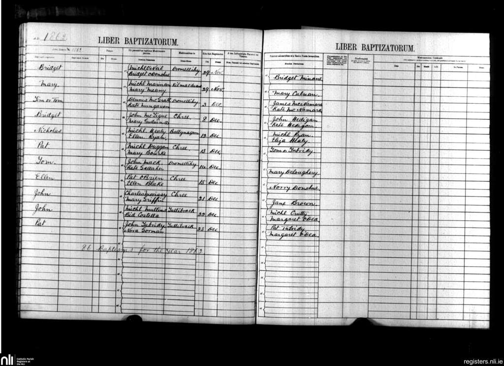 Kilmacduane; County of Clare; Diocese of Killaloe. Baptisms, Nov. 1862 to Dec. 1862