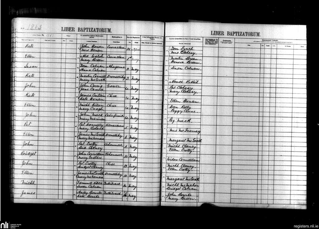 Kilmacduane; County of Clare; Diocese of Killaloe. Baptisms, Apr. 1863 to May 1863