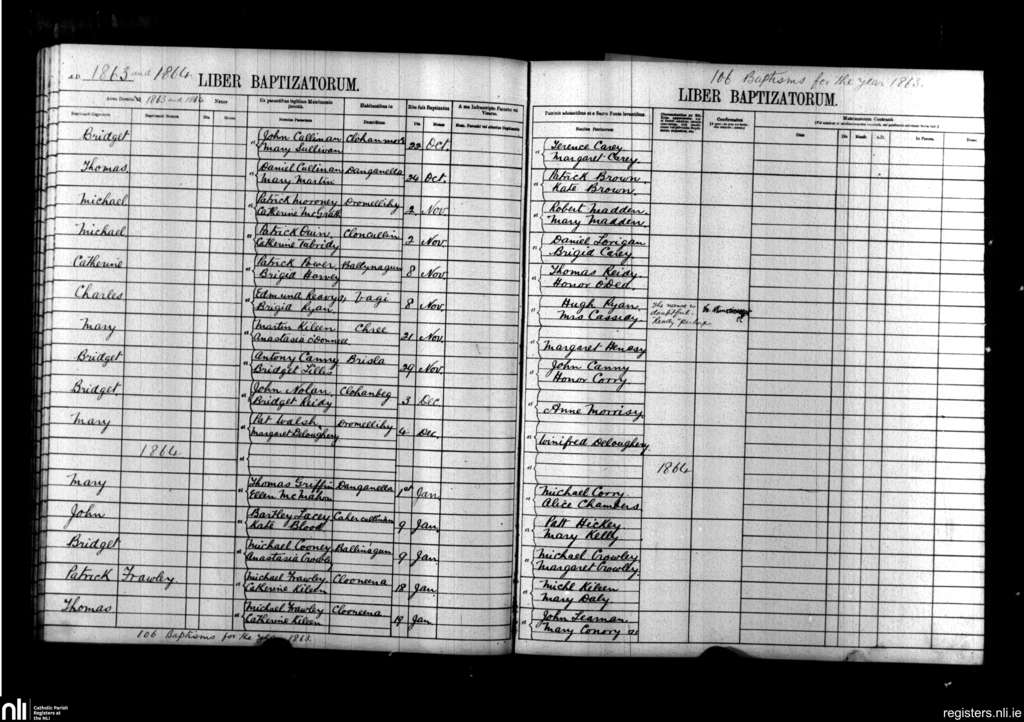 Kilmacduane; County of Clare; Diocese of Killaloe. Baptisms, Oct. 1863 to Jan. 1864