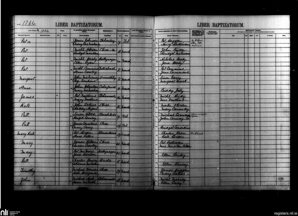 Kilmacduane; County of Clare; Diocese of Killaloe. Baptisms, Feb. 1864 to Mar. 1864