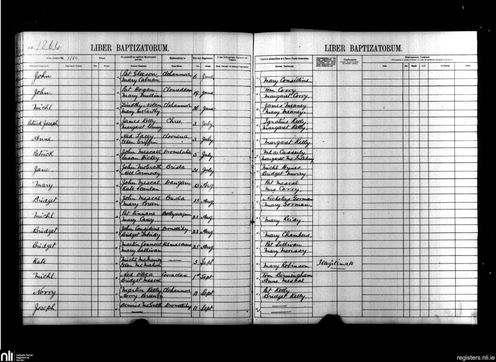 Kilmacduane; County of Clare; Diocese of Killaloe. Baptisms, June 1864 to Sep. 1864