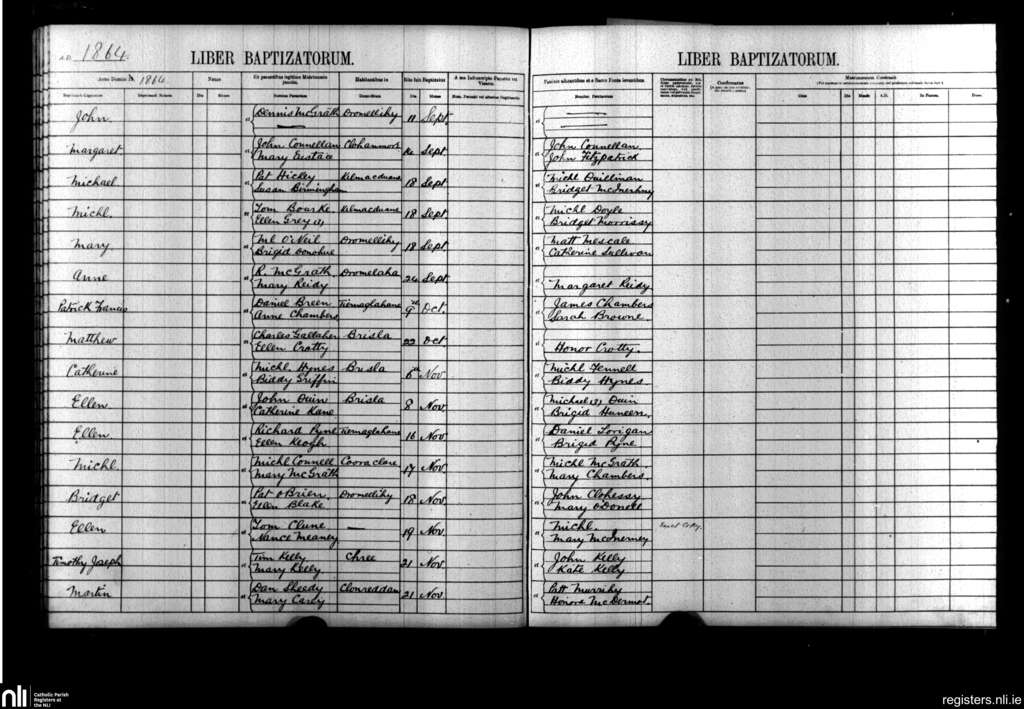 Kilmacduane; County of Clare; Diocese of Killaloe. Baptisms, Sep. 1864 to Nov. 1864