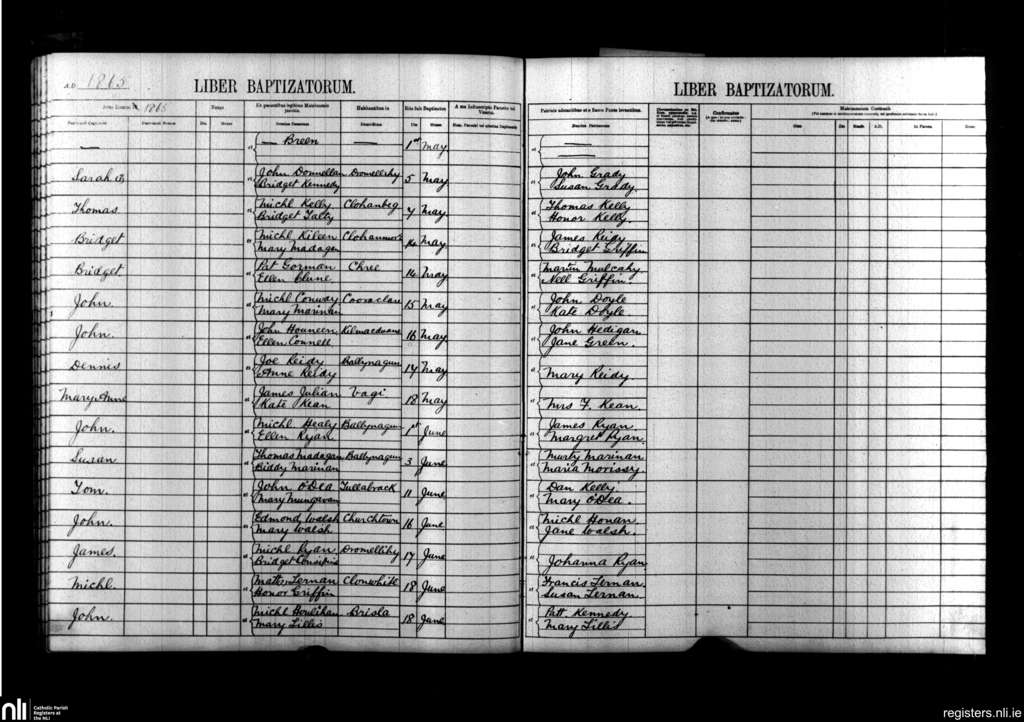 Kilmacduane; County of Clare; Diocese of Killaloe. Baptisms, May 1865 to June 1865