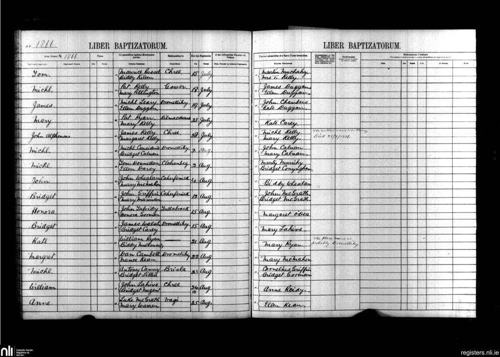 Kilmacduane; County of Clare; Diocese of Killaloe. Baptisms, July 1866 to Aug. 1866