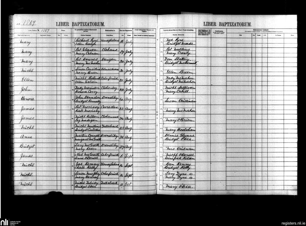 Kilmacduane; County of Clare; Diocese of Killaloe. Baptisms, July 1867 to Oct. 1867