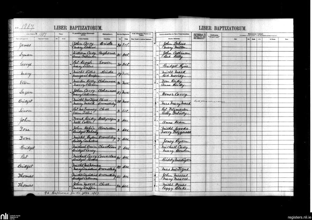 Kilmacduane; County of Clare; Diocese of Killaloe. Baptisms, Oct. 1867 to Dec. 1867