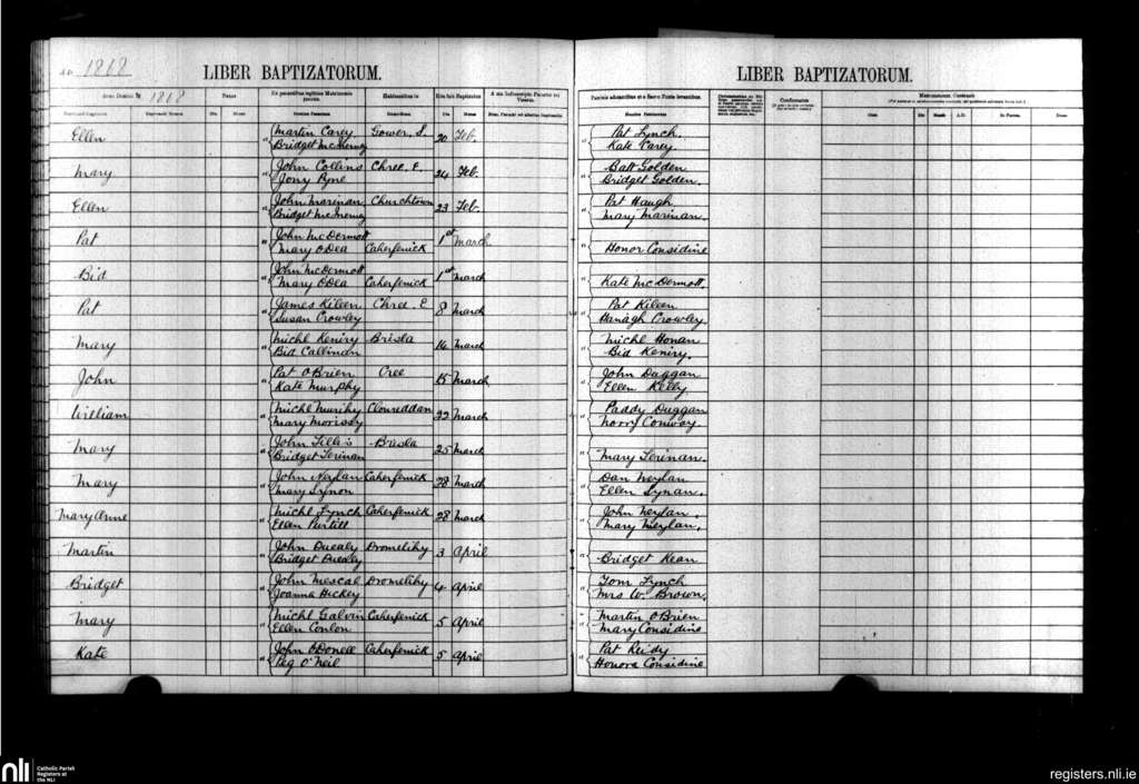 Kilmacduane; County of Clare; Diocese of Killaloe. Baptisms, Feb. 1868 to Apr. 1868