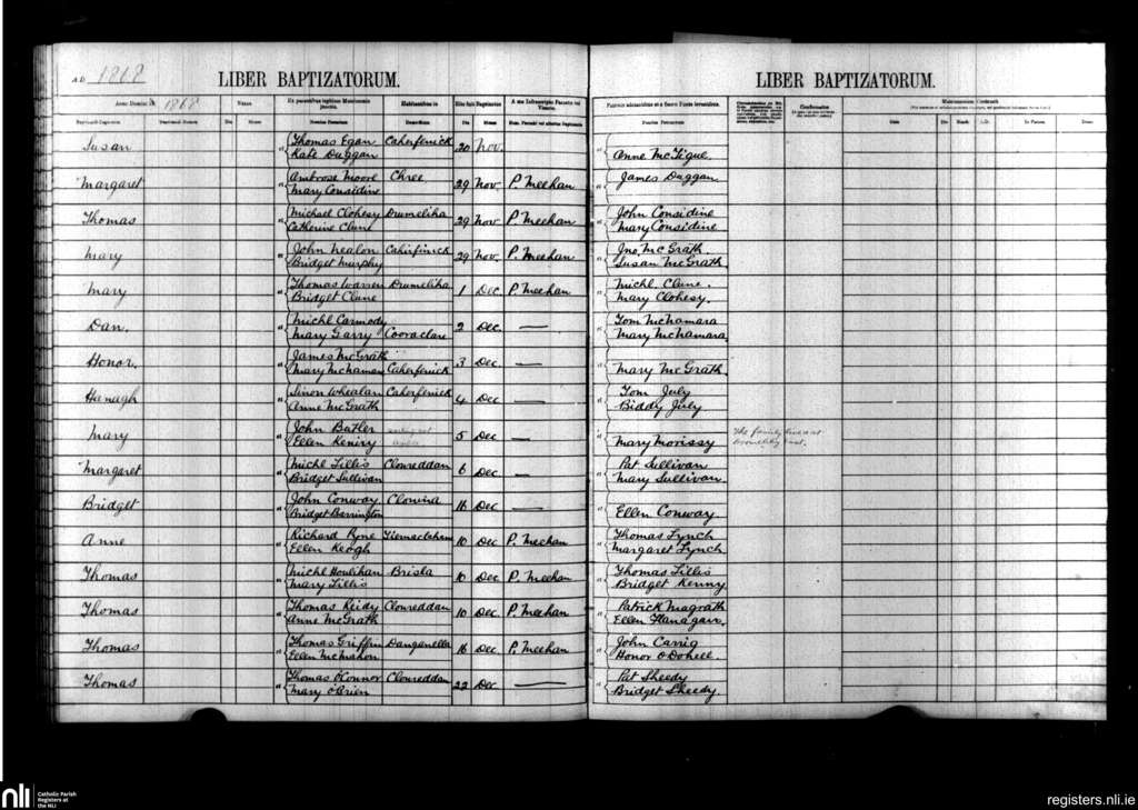 Kilmacduane; County of Clare; Diocese of Killaloe. Baptisms, Nov. 1868 to Dec. 1868