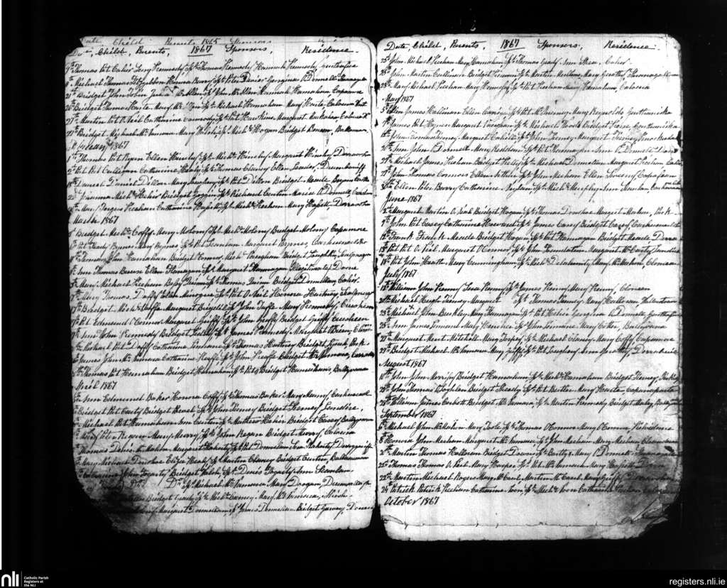 Crusheen; County of Clare; Diocese of Killaloe. Baptisms, Jan. 1867 to Oct. 1867