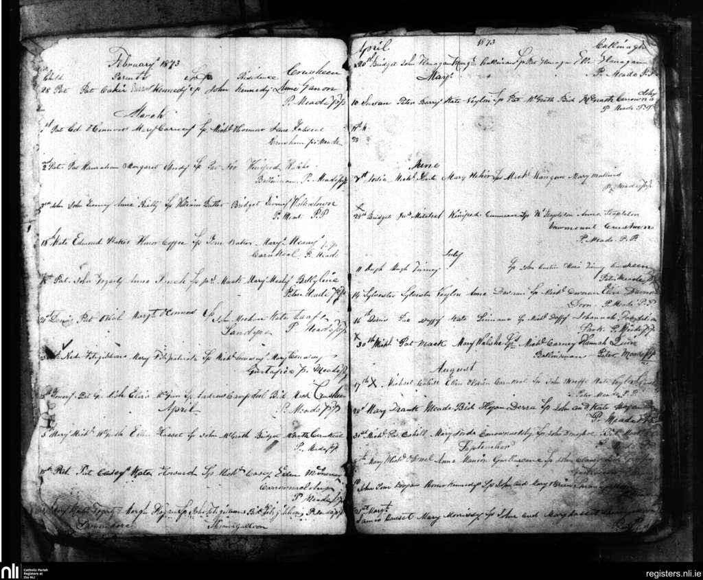 Crusheen; County of Clare; Diocese of Killaloe. Baptisms, Feb. 1873 to Sep. 1873