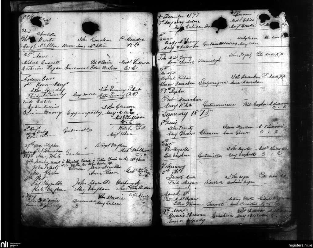 Crusheen; County of Clare; Diocese of Killaloe. Baptisms, Oct. 1877 to Mar. 1878