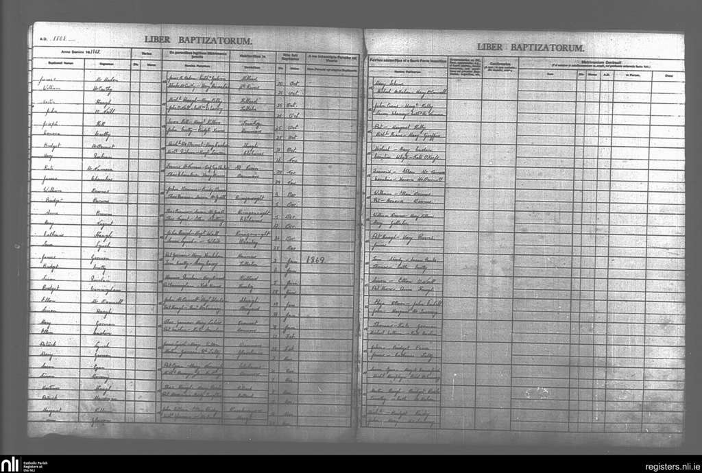 Killard; County of Clare; Diocese of Killaloe. Baptisms, Oct. 1868 to Mar. 1869