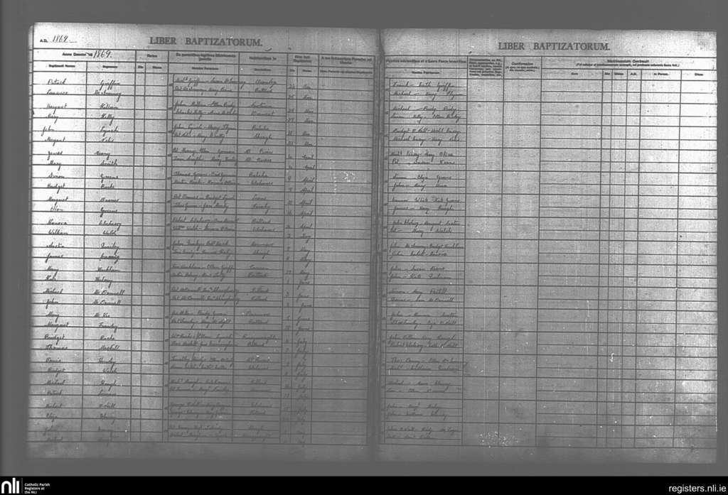 Killard; County of Clare; Diocese of Killaloe. Baptisms, Mar. 1869 to Aug. 1869