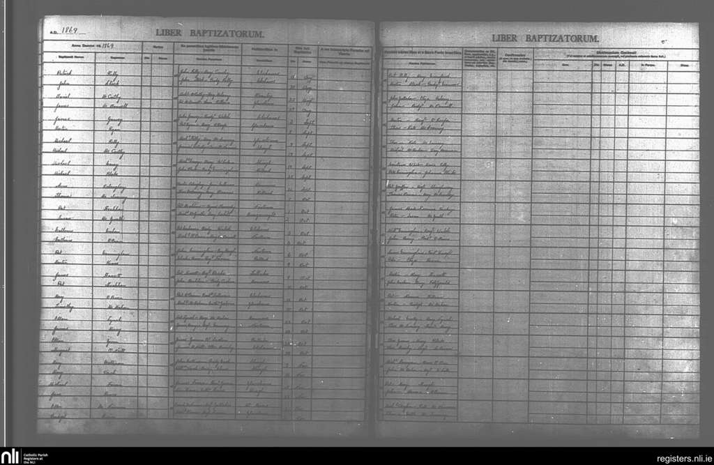 Killard; County of Clare; Diocese of Killaloe. Baptisms, Aug. 1869 to Dec. 1869