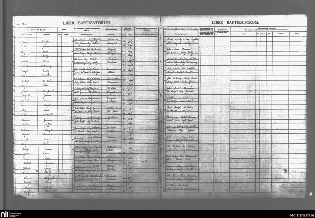 Killard; County of Clare; Diocese of Killaloe. Baptisms, July 1870 to Jan. 1871