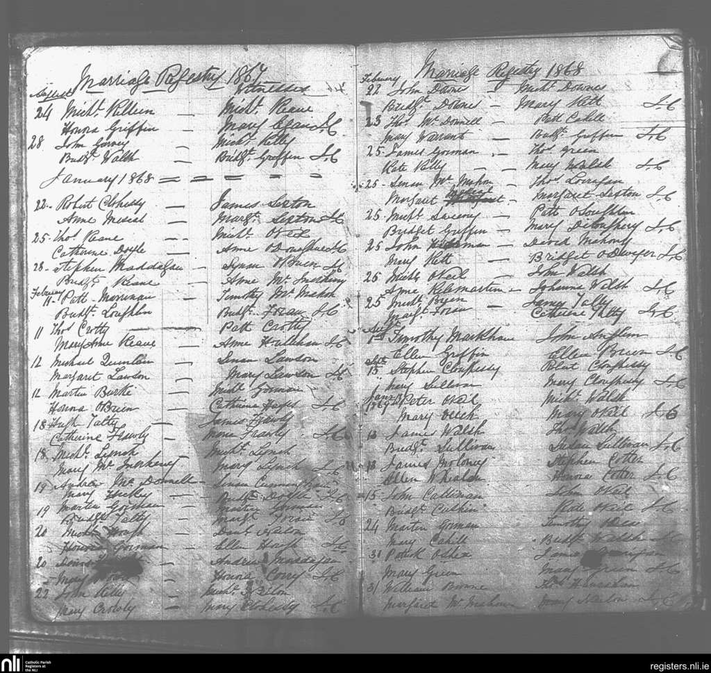 Killard; County of Clare; Diocese of Killaloe. Marriages, Aug. 1867 to Jan. 1869