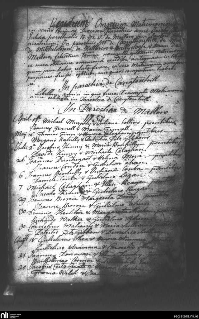 Mallow; County of Cork; Diocese of Cloyne. Marriages, Apr. 1757 to Aug. 1757
