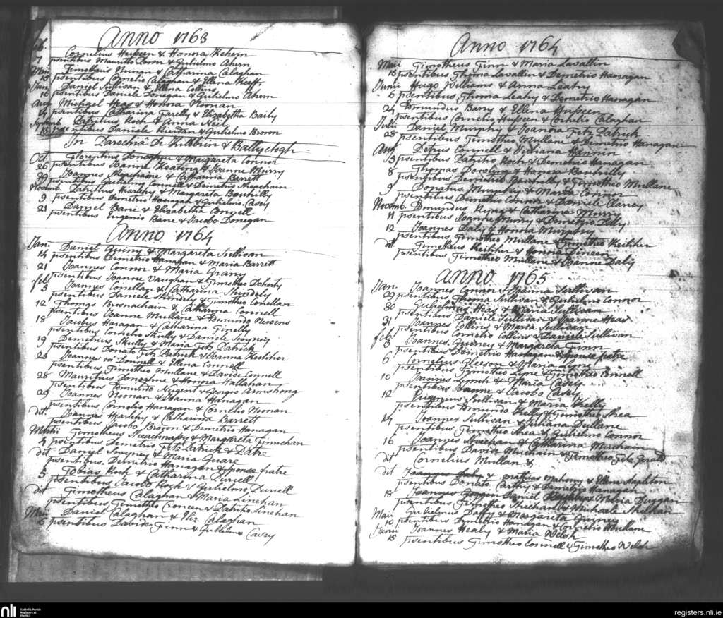 Mallow; County of Cork; Diocese of Cloyne. Marriages, Feb. 1763 to June 1765