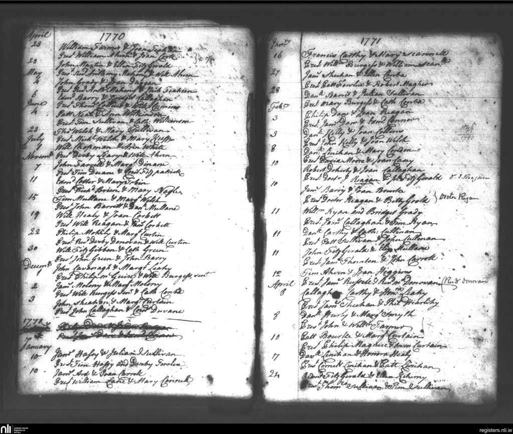 Mallow; County of Cork; Diocese of Cloyne. Marriages, Apr. 1770 to Apr. 1771