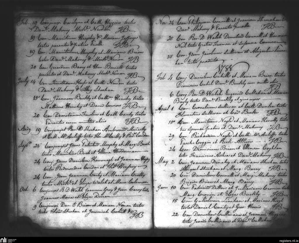 Mallow; County of Cork; Diocese of Cloyne. Marriages, Feb. 1787 to June 1788