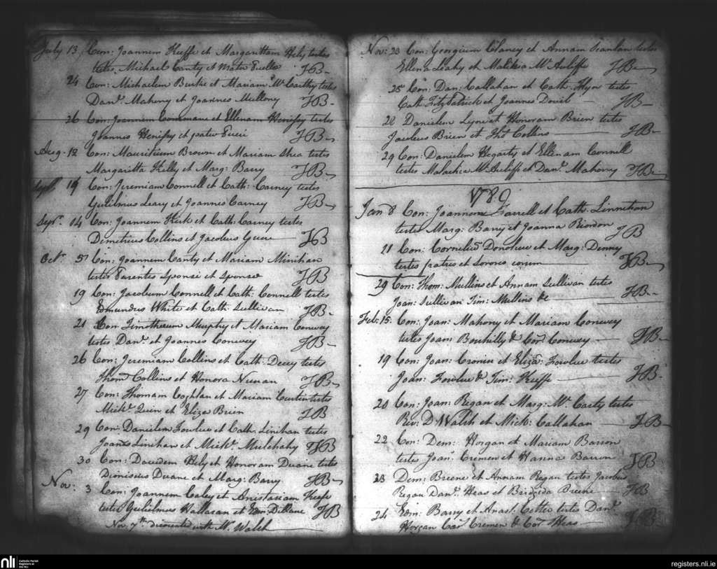 Mallow; County of Cork; Diocese of Cloyne. Marriages, July 1788 to Feb. 1789