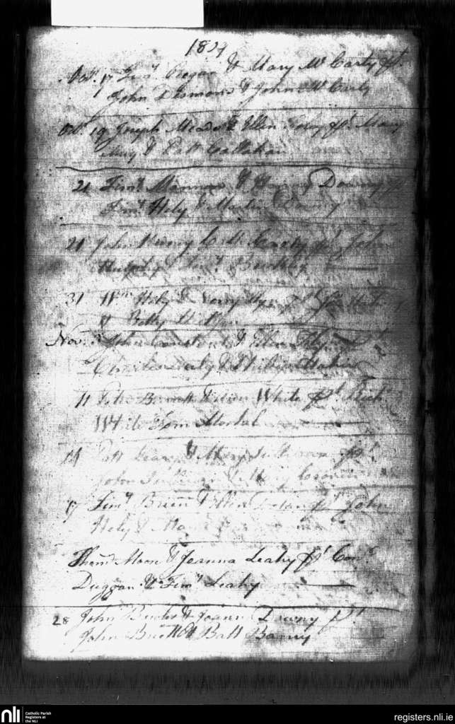 Mallow; County of Cork; Diocese of Cloyne. Marriages, Oct. 1809 to Nov. 1809
