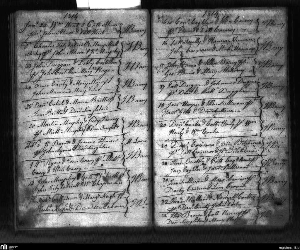 Mallow; County of Cork; Diocese of Cloyne. Marriages, Jan. 1814 to Feb. 1814