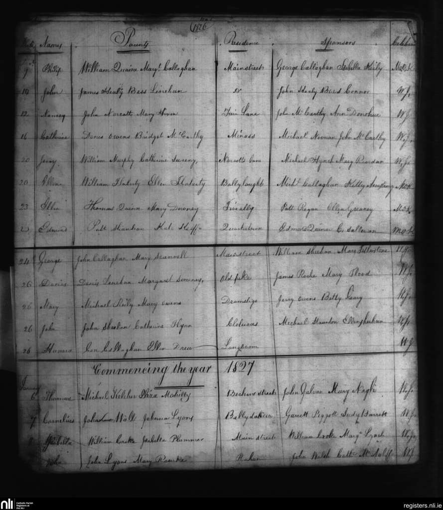 Mallow; County of Cork; Diocese of Cloyne. Baptisms, Dec. 1826 to Jan. 1827