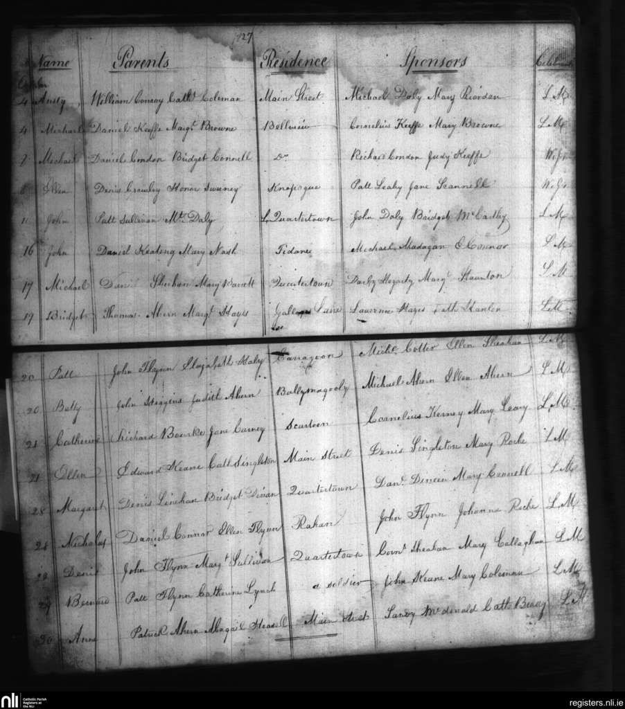 Mallow; County of Cork; Diocese of Cloyne. Baptisms, Oct. 1827