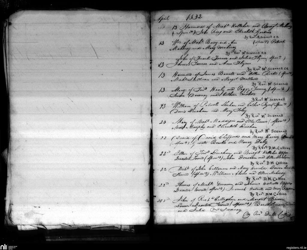 Mallow; County of Cork; Diocese of Cloyne. Baptisms, Apr. 1832