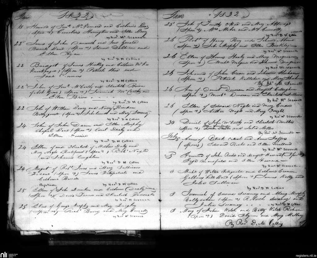 Mallow; County of Cork; Diocese of Cloyne. Baptisms, June 1832 to July 1832