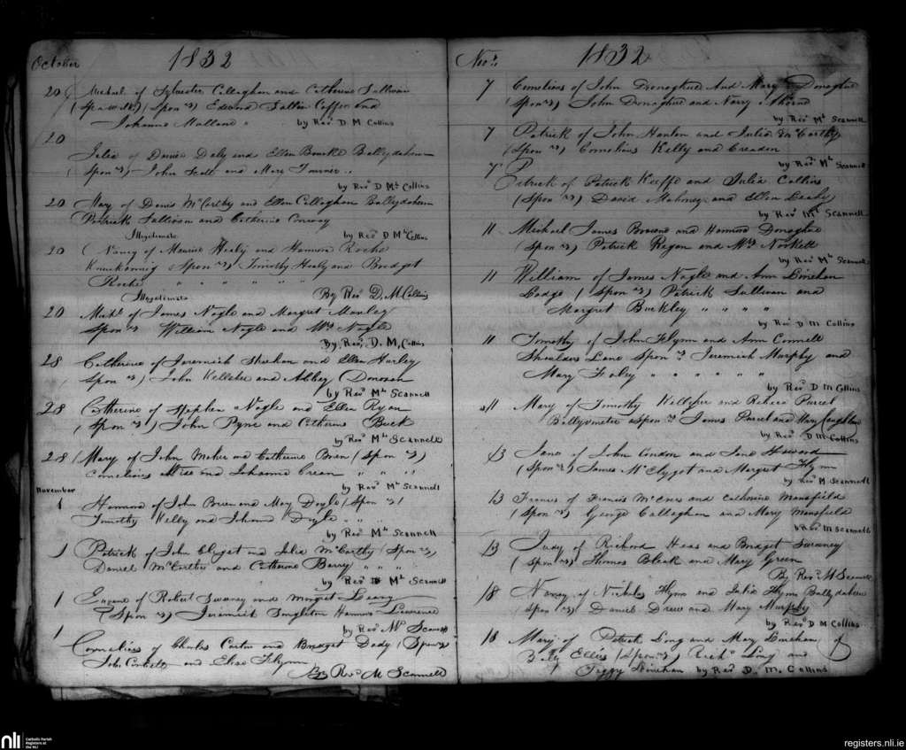 Mallow; County of Cork; Diocese of Cloyne. Baptisms, Oct. 1832 to Nov. 1832