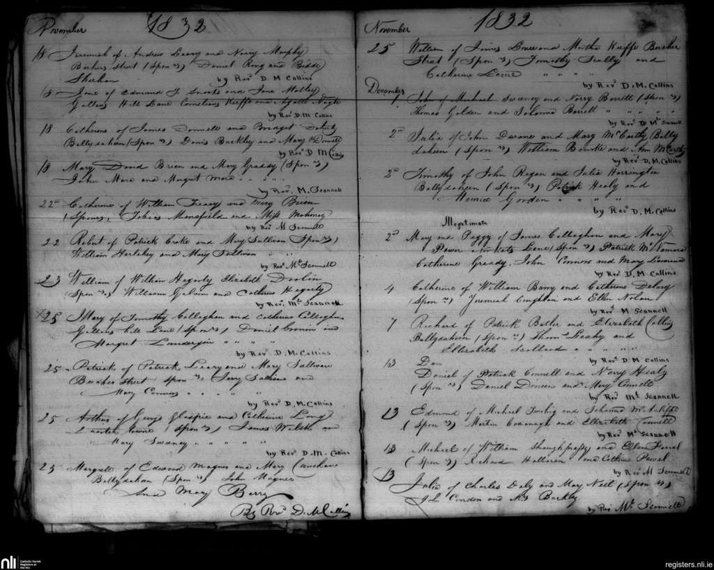 Mallow; County of Cork; Diocese of Cloyne. Baptisms, Nov. 1832 to Dec. 1832