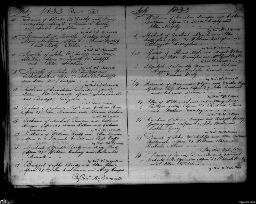 Mallow; County of Cork; Diocese of Cloyne. Baptisms, July 1833