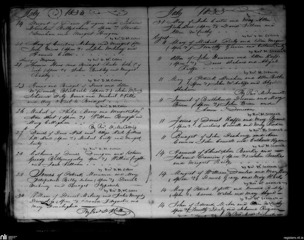 Mallow; County of Cork; Diocese of Cloyne. Baptisms, July 1833 to Aug. 1833