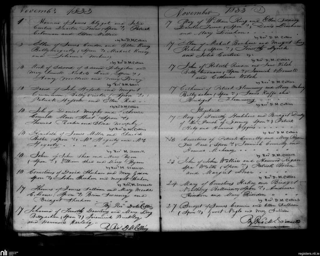 Mallow; County of Cork; Diocese of Cloyne. Baptisms, Nov. 1833