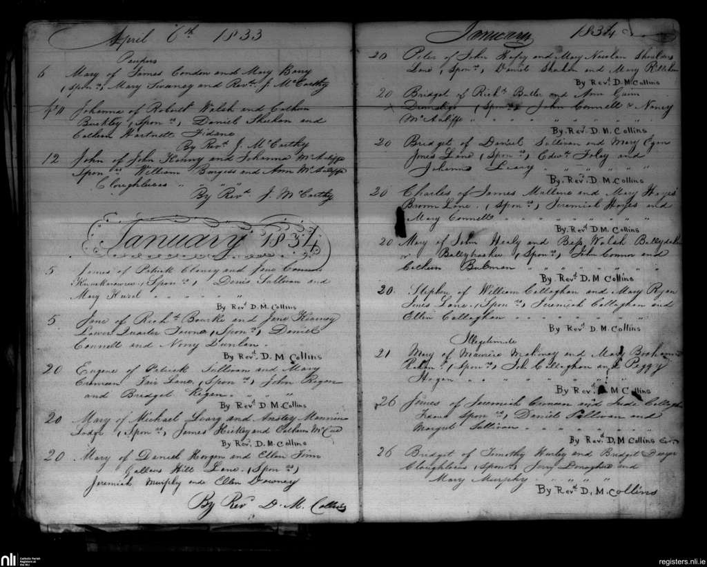 Mallow; County of Cork; Diocese of Cloyne. Baptisms, Apr. 1833 to Jan. 1834