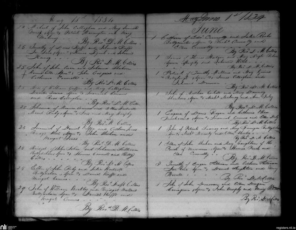 Mallow; County of Cork; Diocese of Cloyne. Baptisms, May 1834 to June 1834