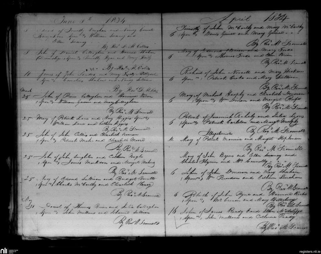 Mallow; County of Cork; Diocese of Cloyne. Baptisms, Mar. 1834 to June 1834