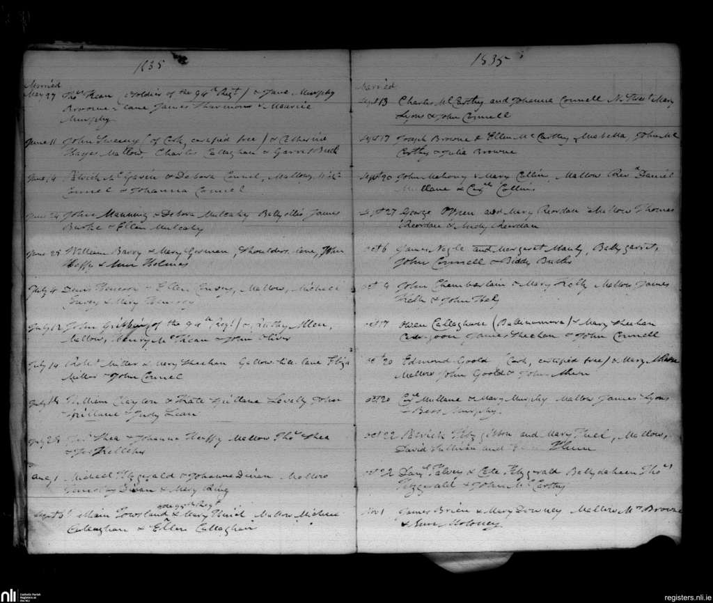 Mallow; County of Cork; Diocese of Cloyne. Marriages, May 1835 to Nov. 1835