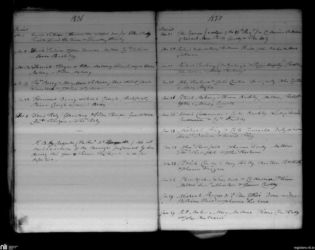 Mallow; County of Cork; Diocese of Cloyne. Marriages, Nov. 1836 to Jan. 1837