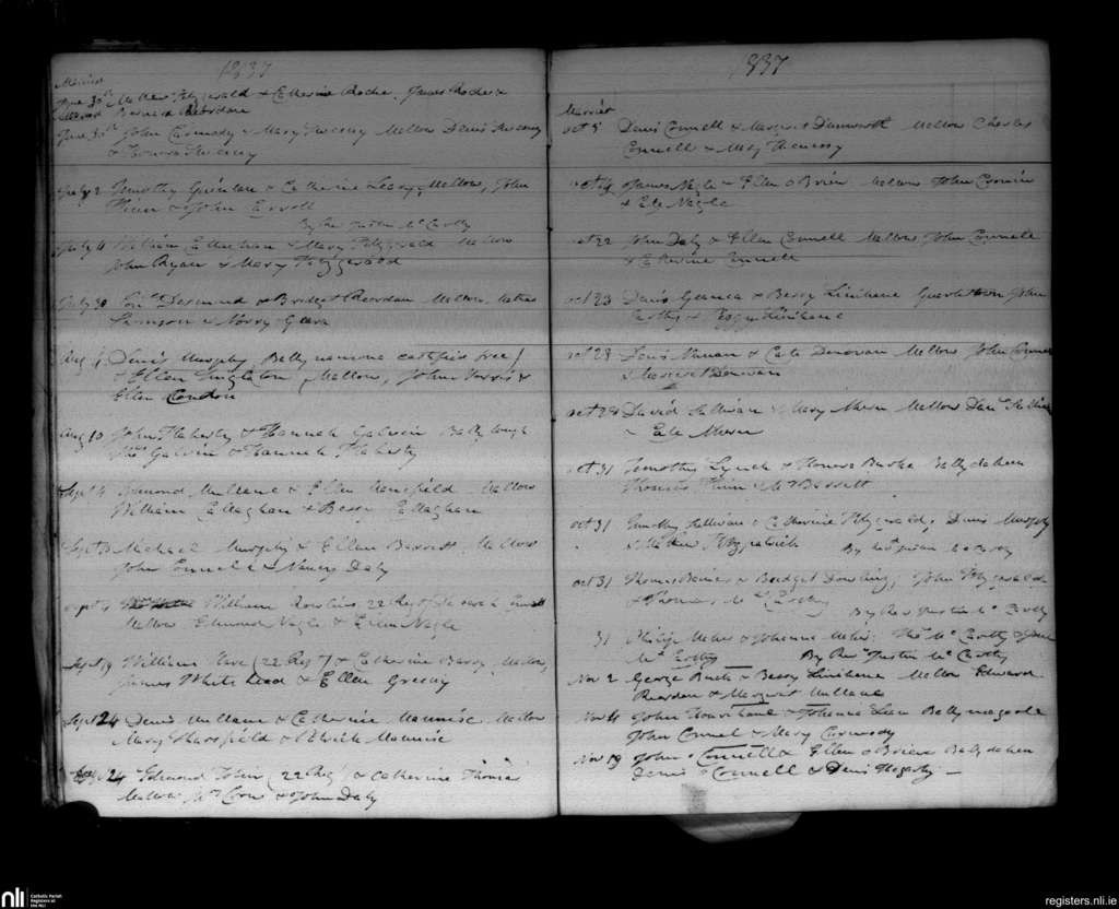 Mallow; County of Cork; Diocese of Cloyne. Marriages, June 1837 to Nov. 1837