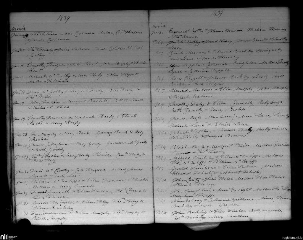 Mallow; County of Cork; Diocese of Cloyne. Marriages, Jan. 1839 to Feb. 1839